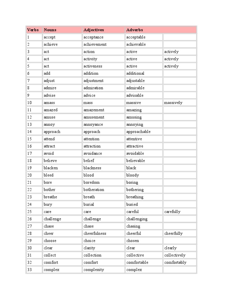 Examples Of Nouns Verbs Adjective Page 6 Line 17qq Com from img.17qq.com Educate, education, educational work, work, work electrify, electricity, electrical operate, operation, operational conduct, conductor phissen is there some table/list of words that are transformed from noun to verb, adjective and adverb. A number such as 1st, 2nd, 3rd, 4th, that shows the position of something in a list of things. Free reading and writing worksheets from k5 learning; With a list of common adjectives at hand, you can effectively describe your surroundings in detail. The amended list is included below along with the definitions of each word. Learn how to recognize nouns, verbs, adjectives, and adverbs in this important basic grammar lesson. The best film of the year; Many english prepositions also follow verbs.